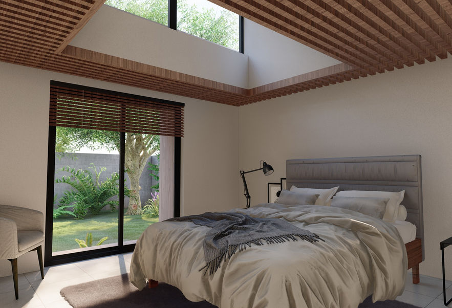 Se Origina en base a un programa bastante acotado por el ciente, ya que debía tener dos dormitorios en Suit mas dos dormitorios con baño compartido.